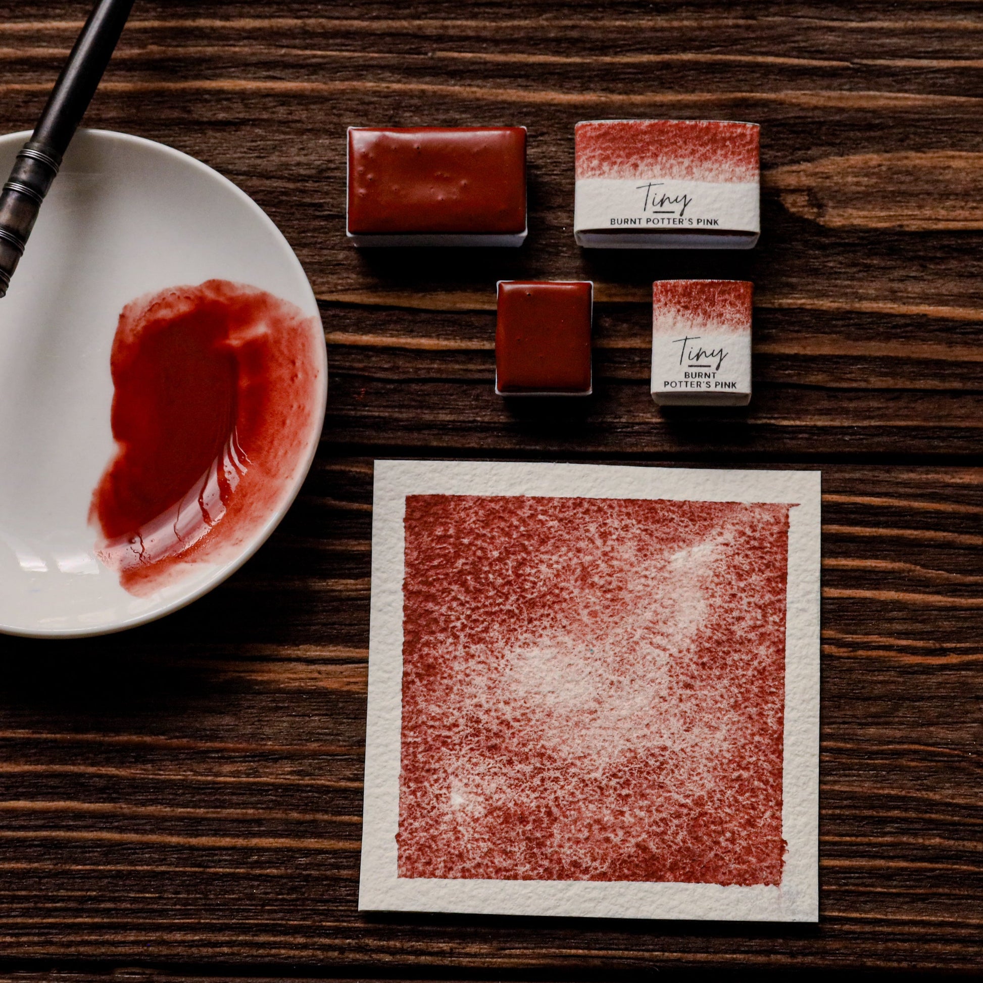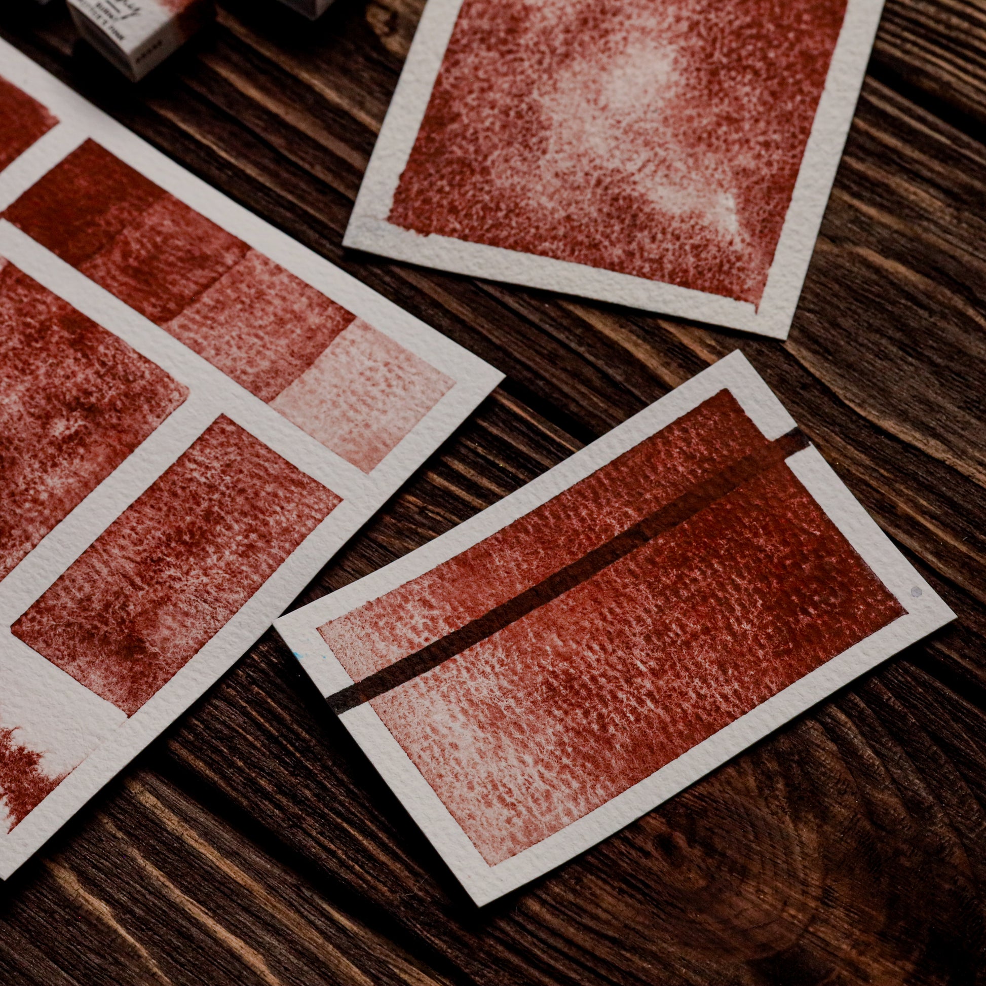 Burnt Potter's Pink is made with a unique and rare pigment PR232. A very warm reddish brown. With the same heavy amount of granulation as Potter's Pink has, it adds a beautiful texture and depth to washes, especially on rough cold pressed watercolor paper.