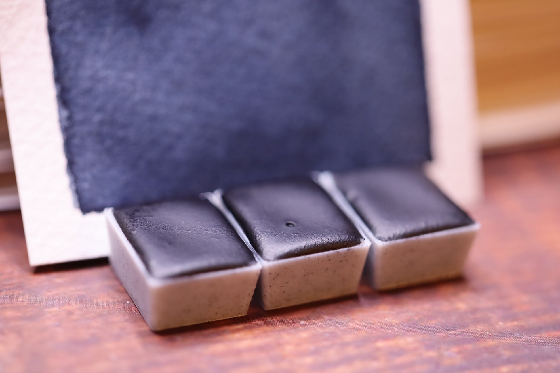 Your order is carefully packed, watercolor pans are are wrapped in a label made of hand-painted Arches paper, with pigment properties detailed on the sides. The label includes an anti-stick section to prevent the paint from adhering to it or the packaging.