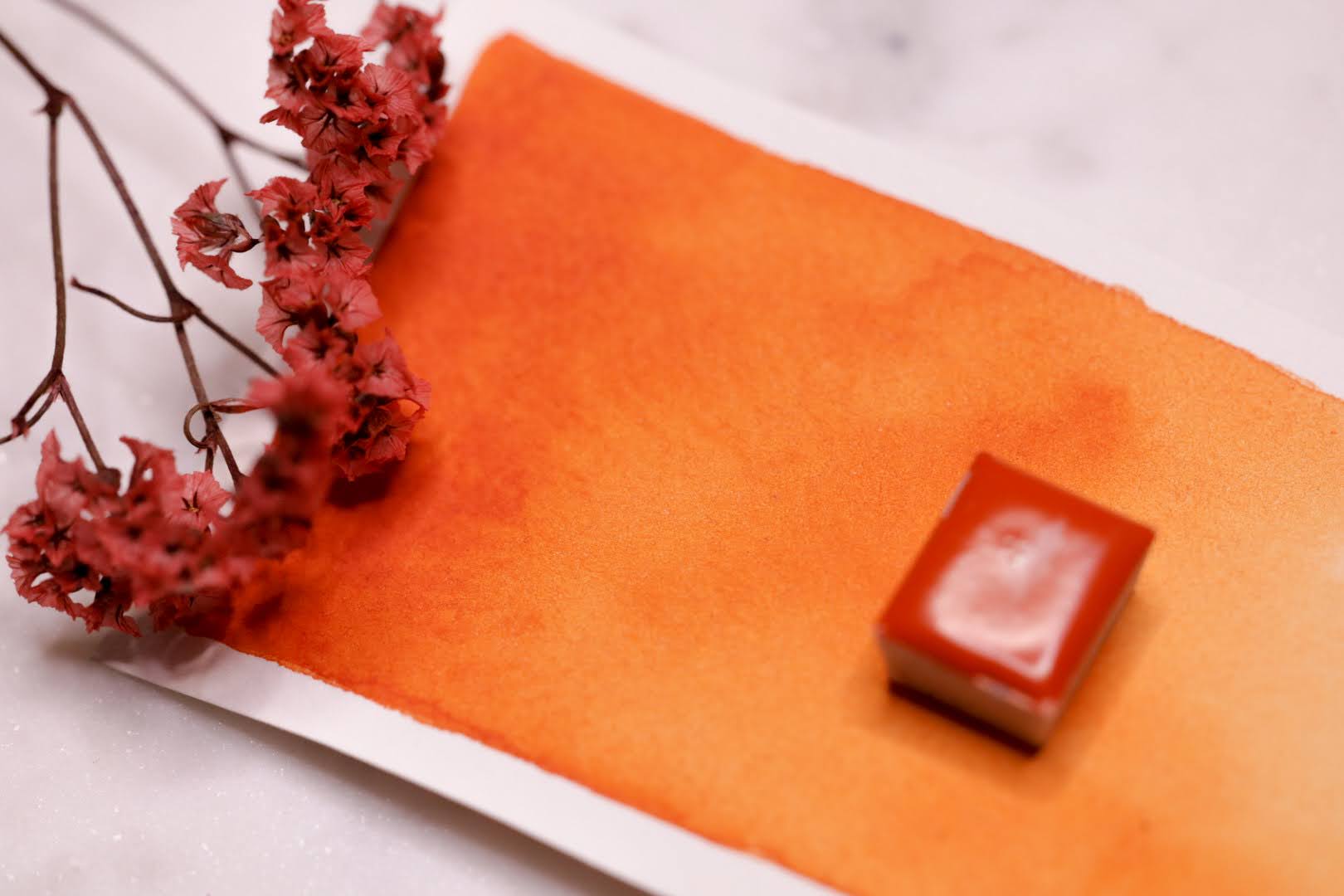Isoindal Orange (PO61) is a very warm reddish orange color. It’s transparant and very nice to use for the glazing technique in watercolor.