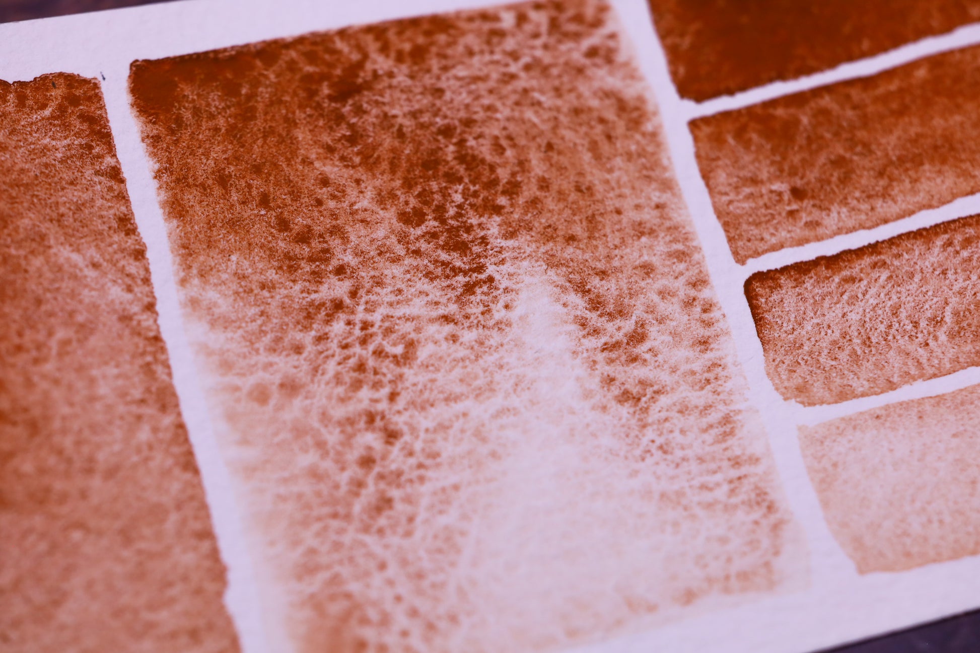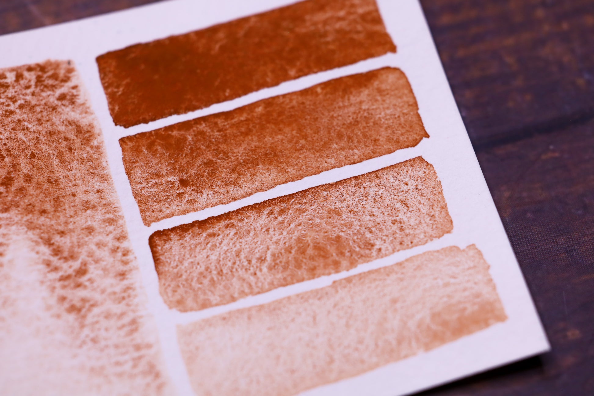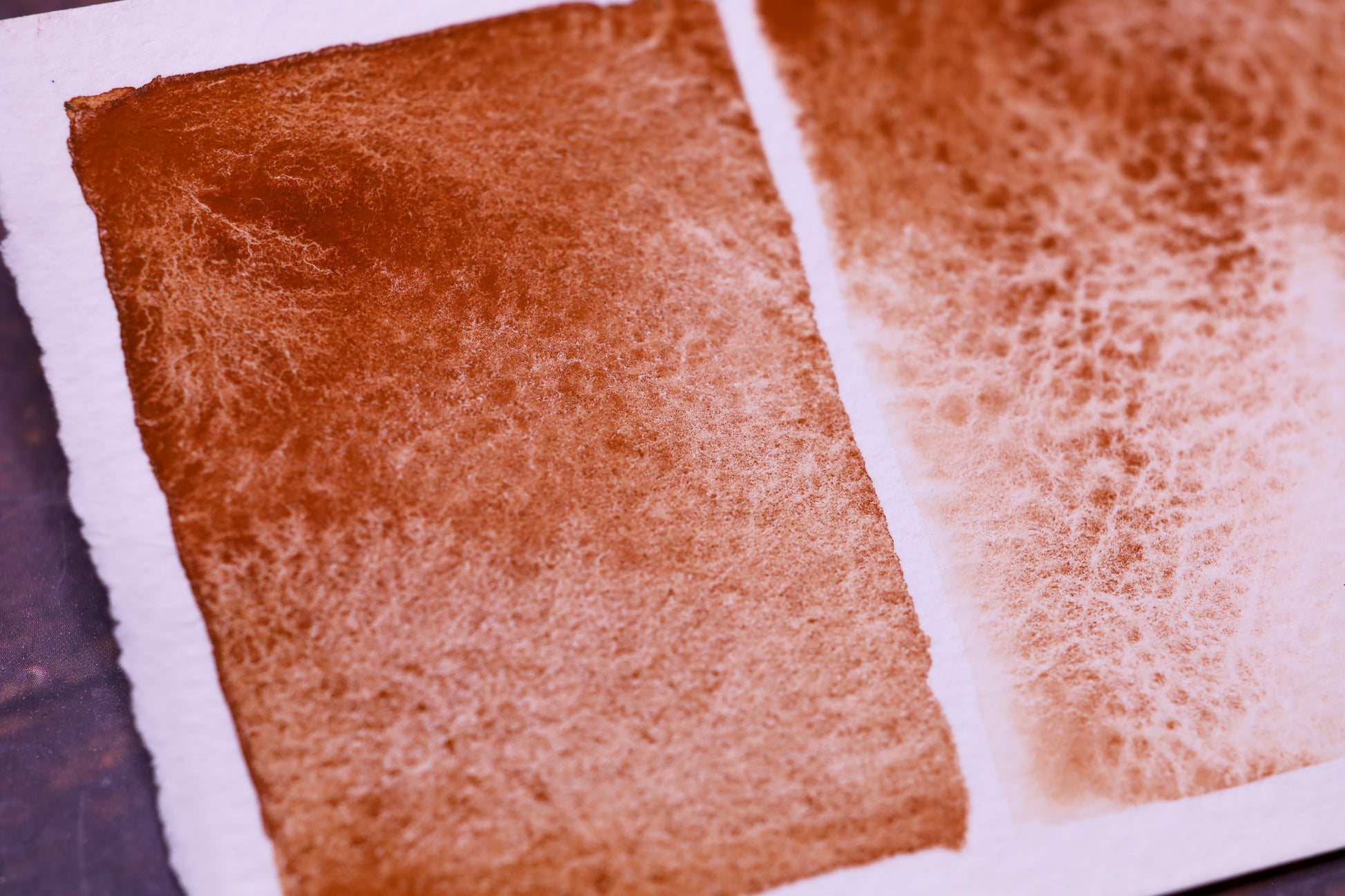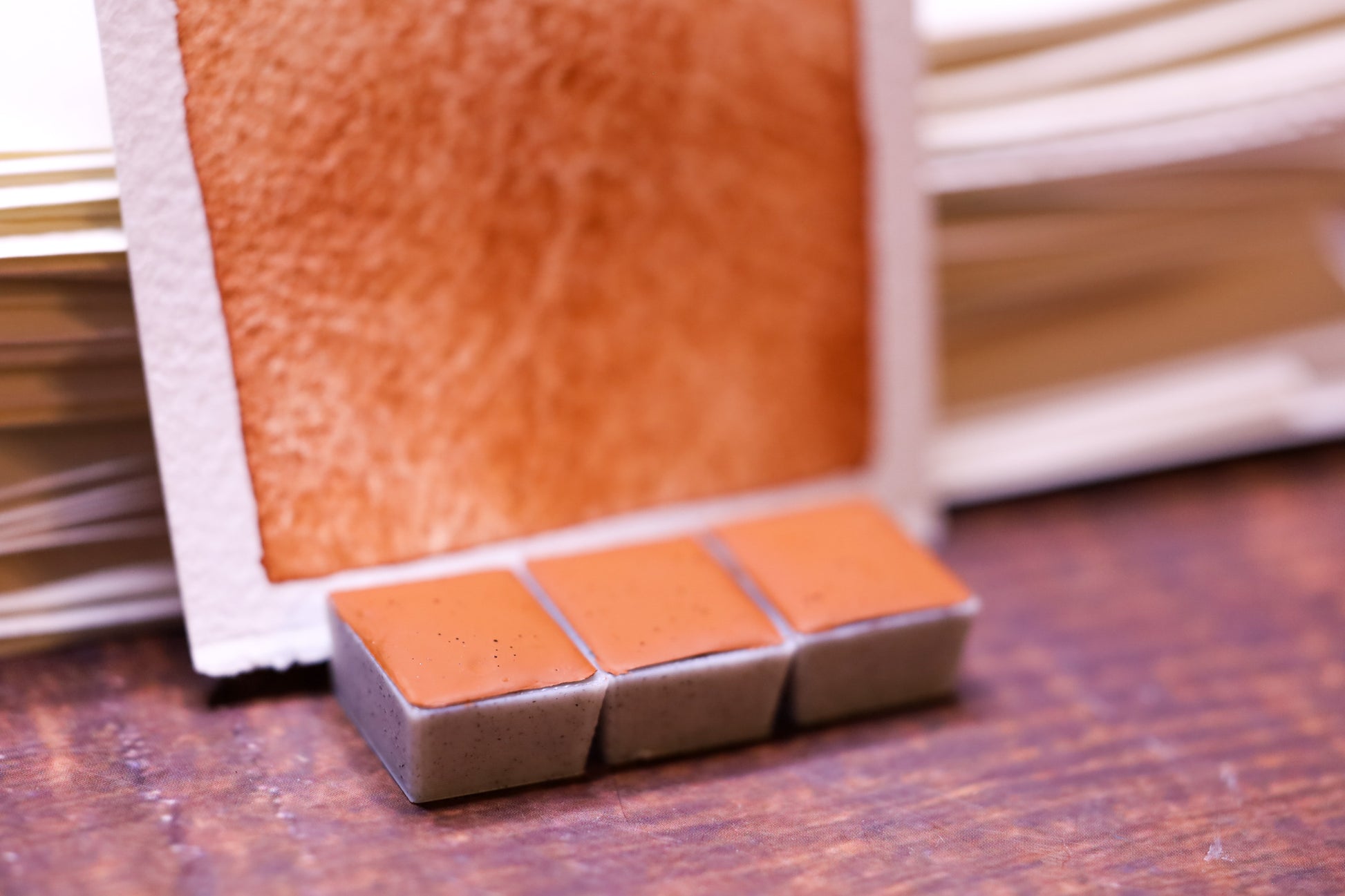 Your order is carefully packed, watercolor pans are are wrapped in a label made of hand-painted Arches paper, with pigment properties detailed on the sides. The label includes an anti-stick section to prevent the paint from adhering to it or the packaging.