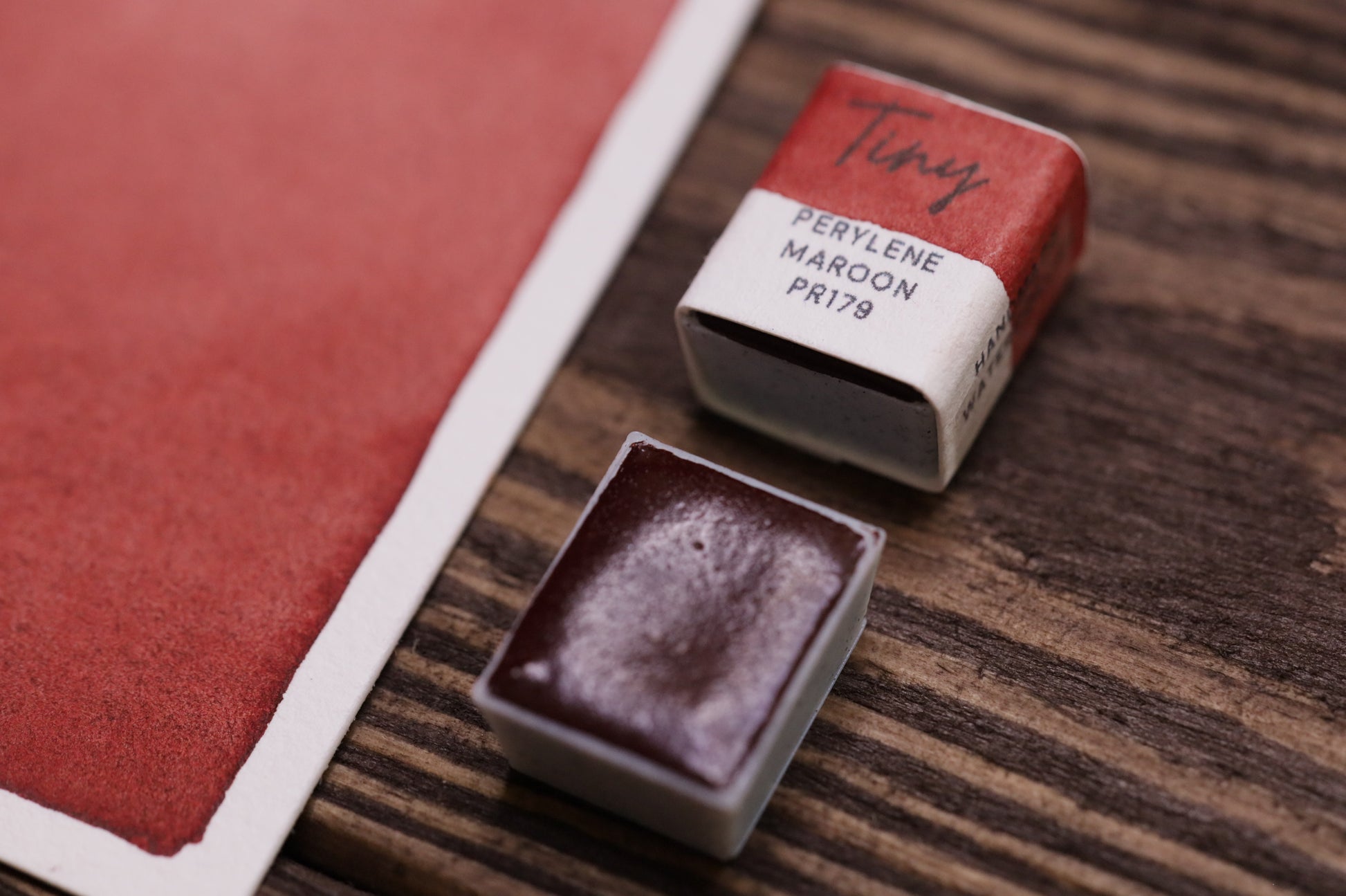 Perlene Maroon (PR179) is a highly pigmented, very dark valued, moderately intense deep red color. It can be used to create warm, earthy tones, worth exploring in landscape, botanical or portrait work.