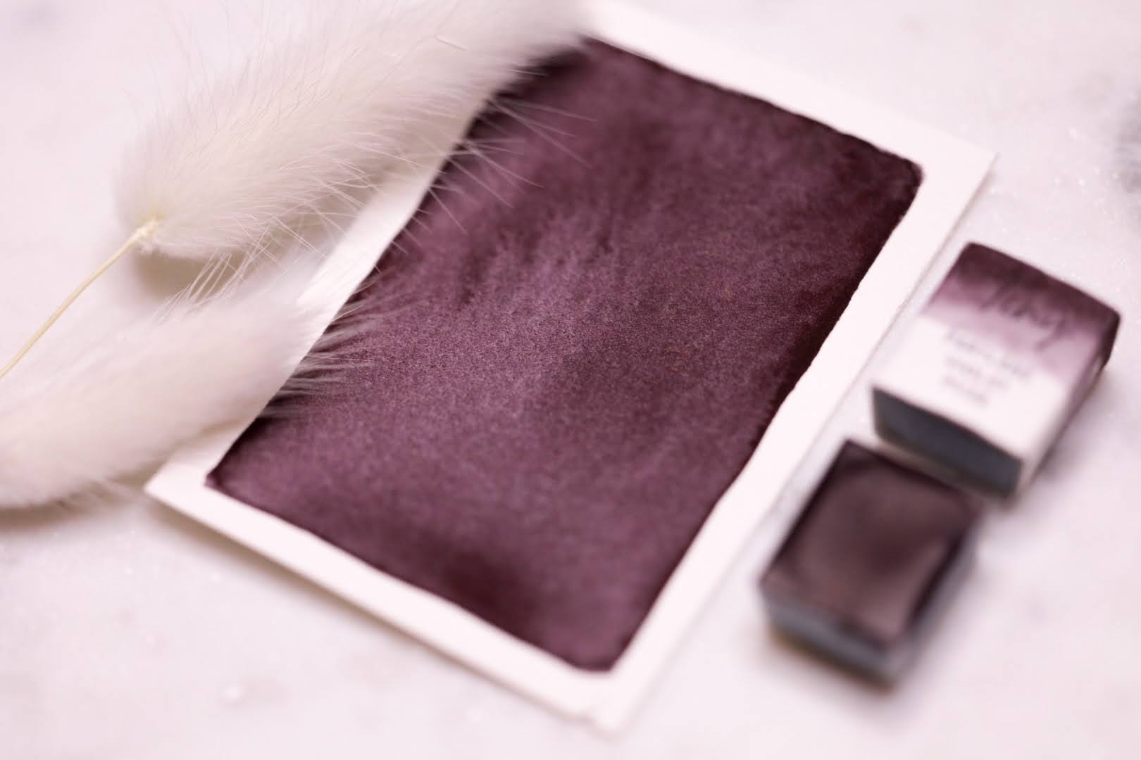 Your order is carefully packed, watercolor pans are are wrapped in a label made of hand-painted Arches paper, with pigment properties detailed on the sides. The label includes an anti-stick section to prevent the paint from adhering to it or the packaging.