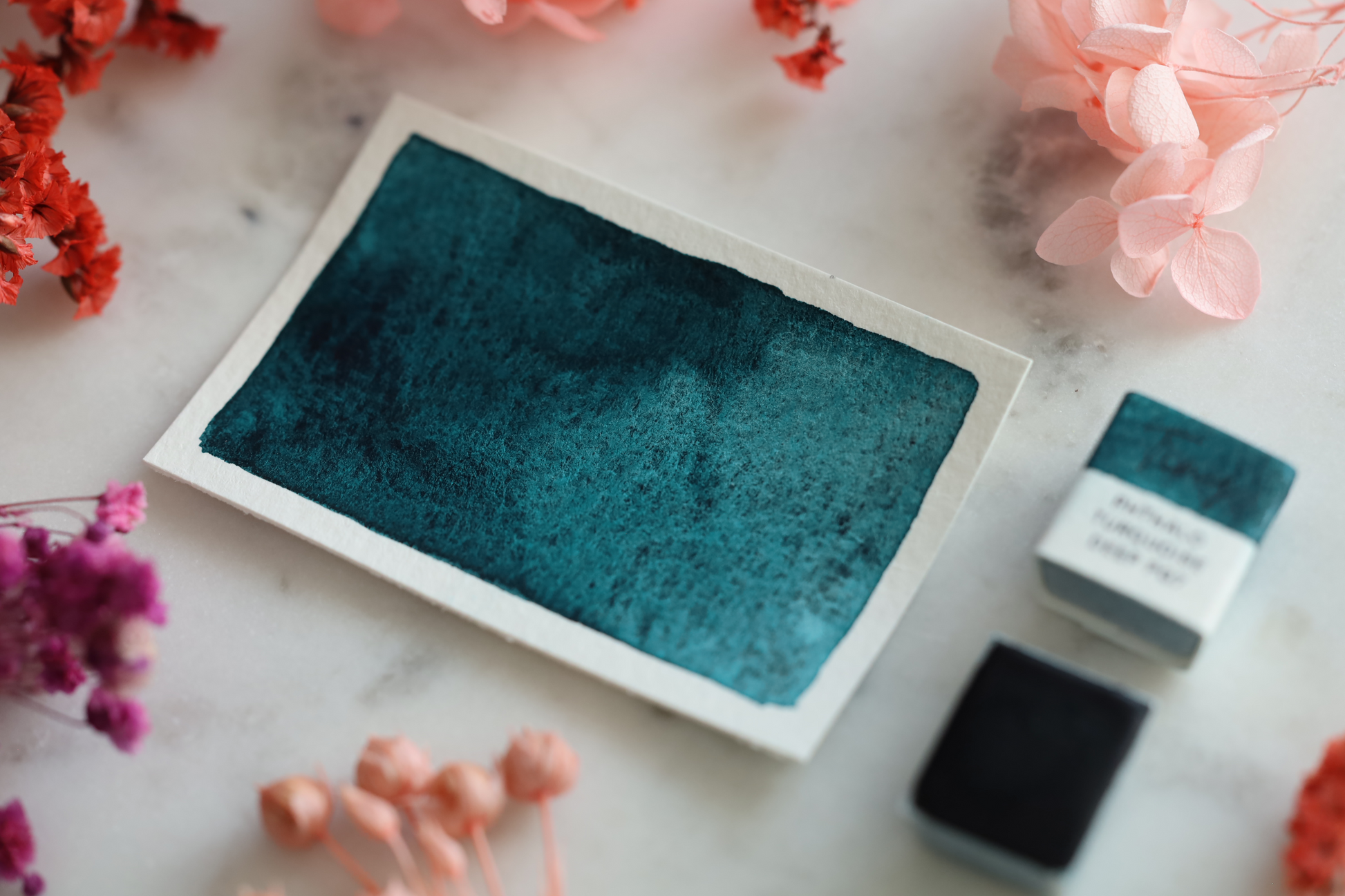 Phthalo turquoise deep is a turqoise green/blue with black undertones.