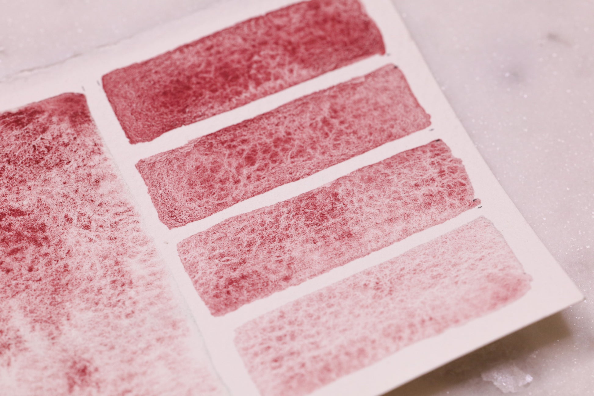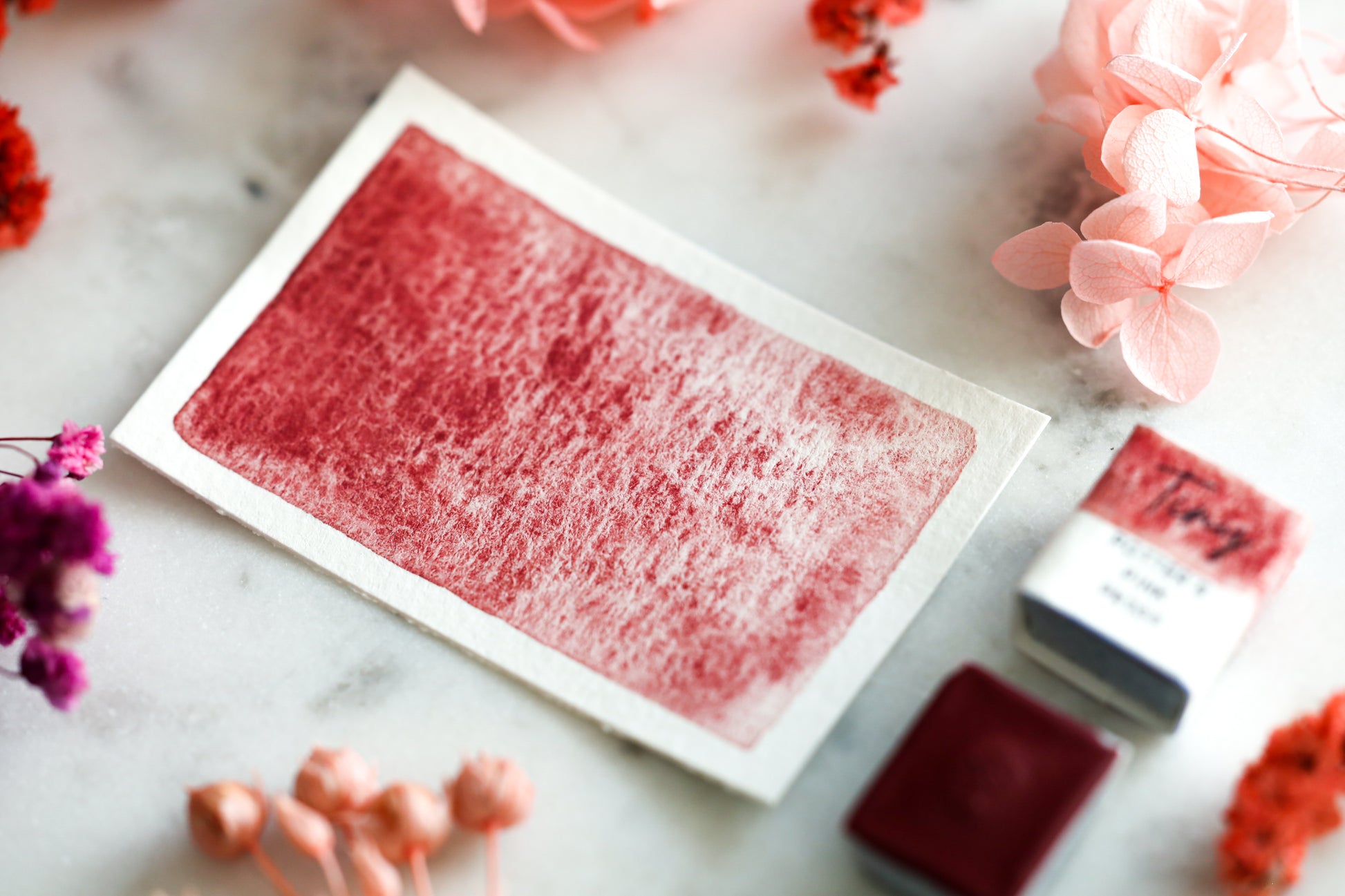Potter’s Pink is the lightfast delicate and romantic soft pink that was used in English watercolor painting of the 18th and 19th centuries – a beautiful counterpoint for brighter, more saturated colors. It is commonly used in ceramics and frescos, giving its name Potter’s Pink. It’s a strongly granulating watercolor, it creates the most beautiful granulating mixes.