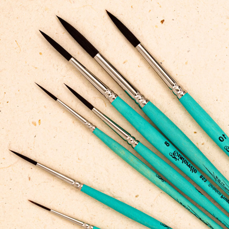 The Prugna (series 853) has highly elastic fibers, with a very elongated body and a thin and perfect tip, allows the use of semi-creamy watercolors with maximum control over the clean and precise brushstroke. The body of the tip allows a high color charge between the fibers.