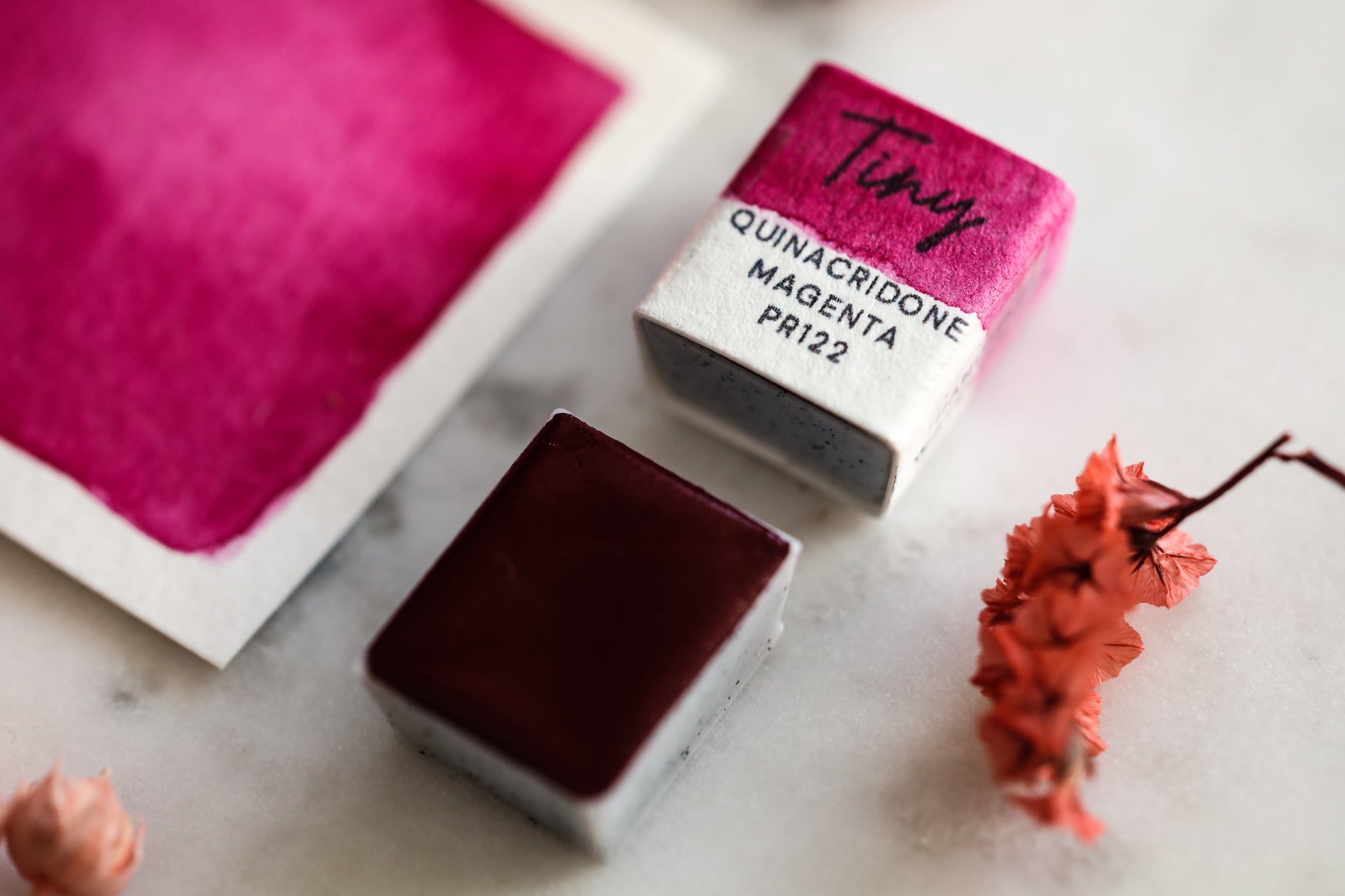 Quinacridone maganta is a brilliant color that mixes clean with other colors. It’s a good choice to use as a cold red in your mixing palette.