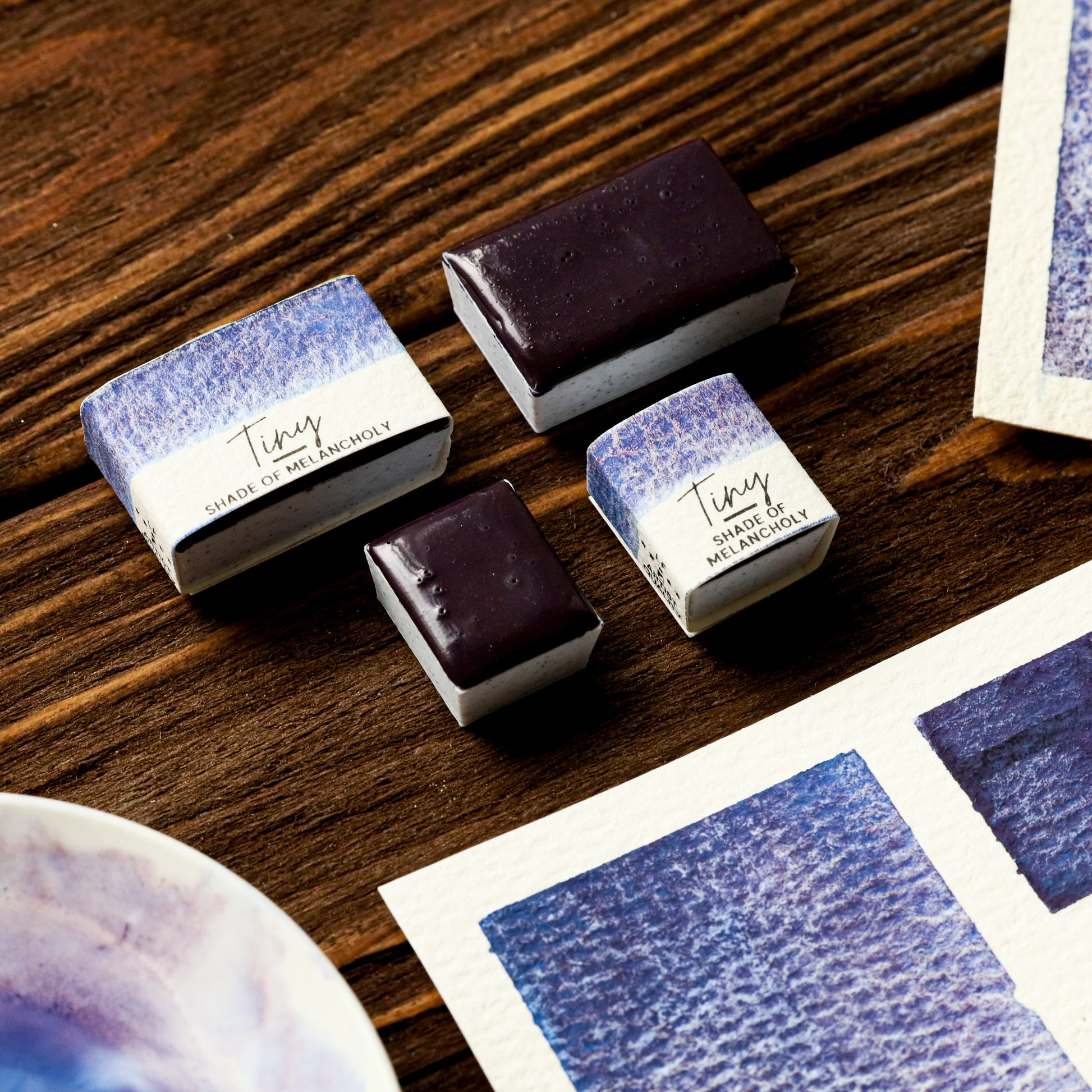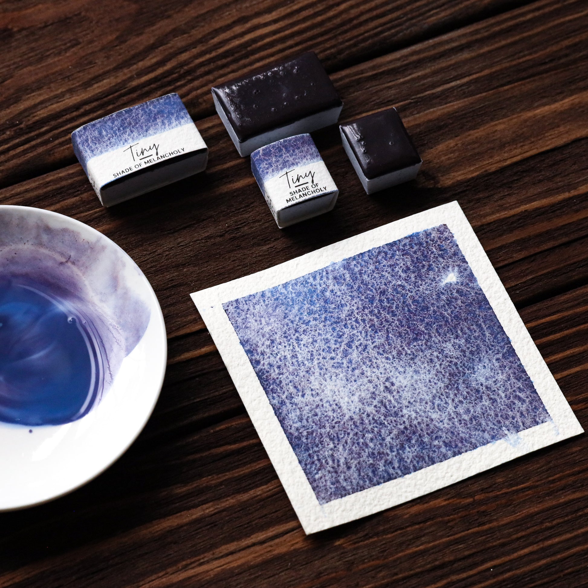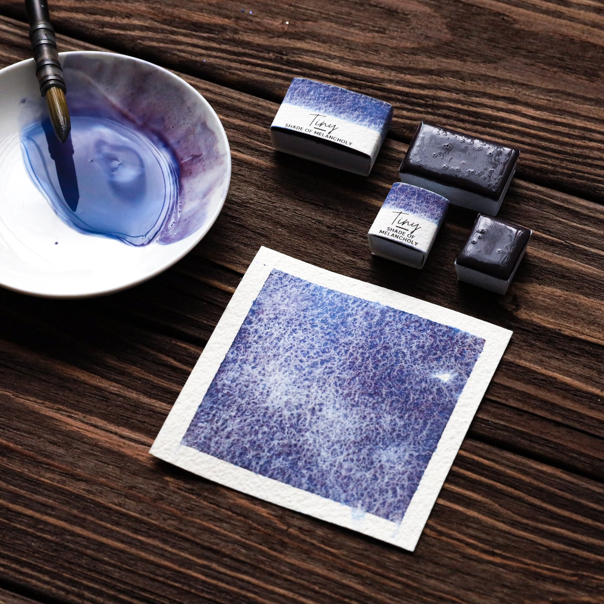 Shade of Melancholy is a muted, deep blue with violet undertones and strong granulation. It's made from a blend of PB72 and PR232 and settles into beautiful textures and subtle shifts, perfect for capturing emotion and atmosphere.
