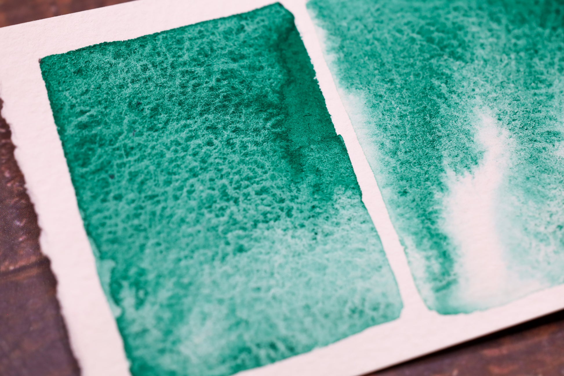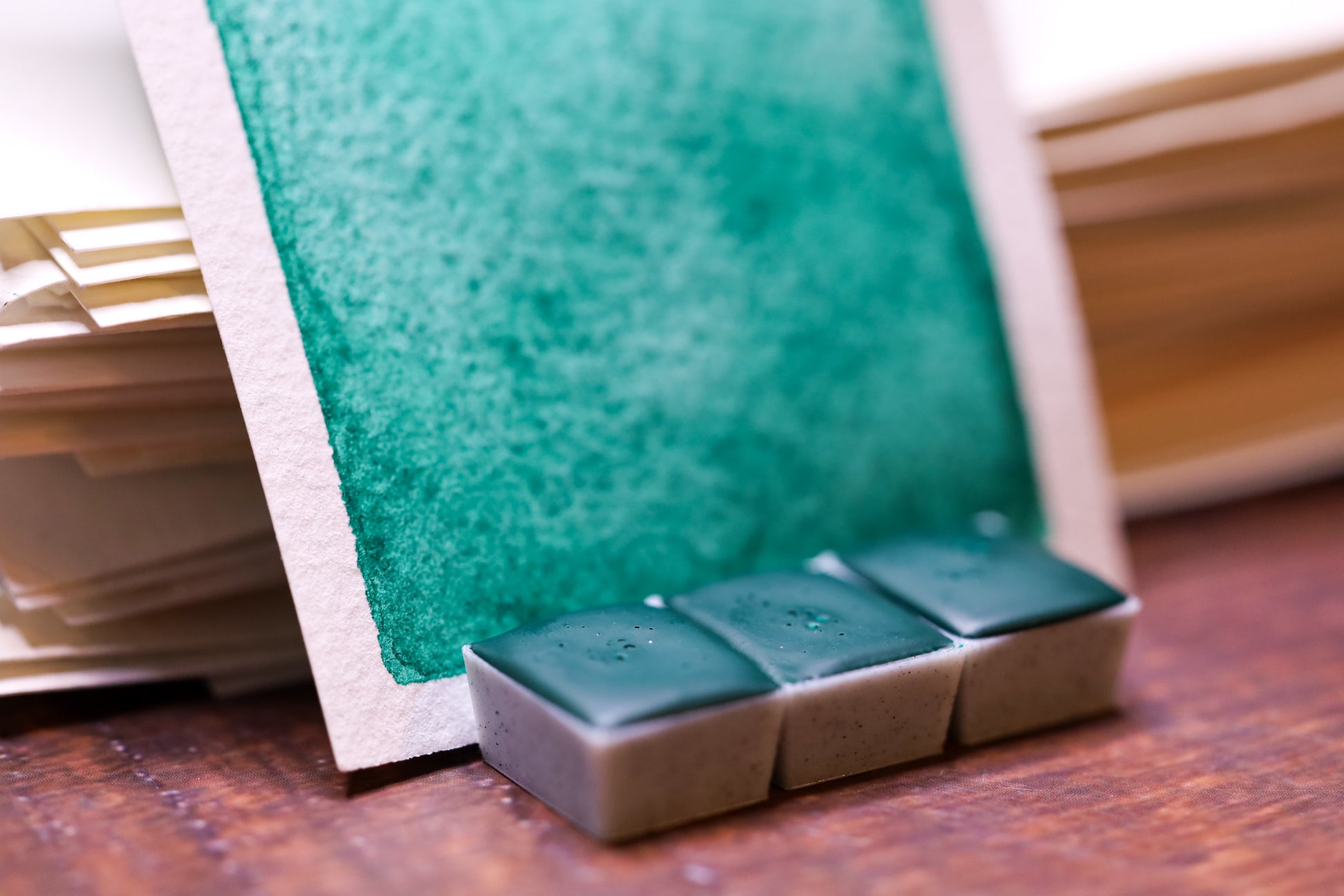 Your order is carefully packed, watercolor pans are are wrapped in a label made of hand-painted Arches paper, with pigment properties detailed on the sides. The label includes an anti-stick section to prevent the paint from adhering to it or the packaging.