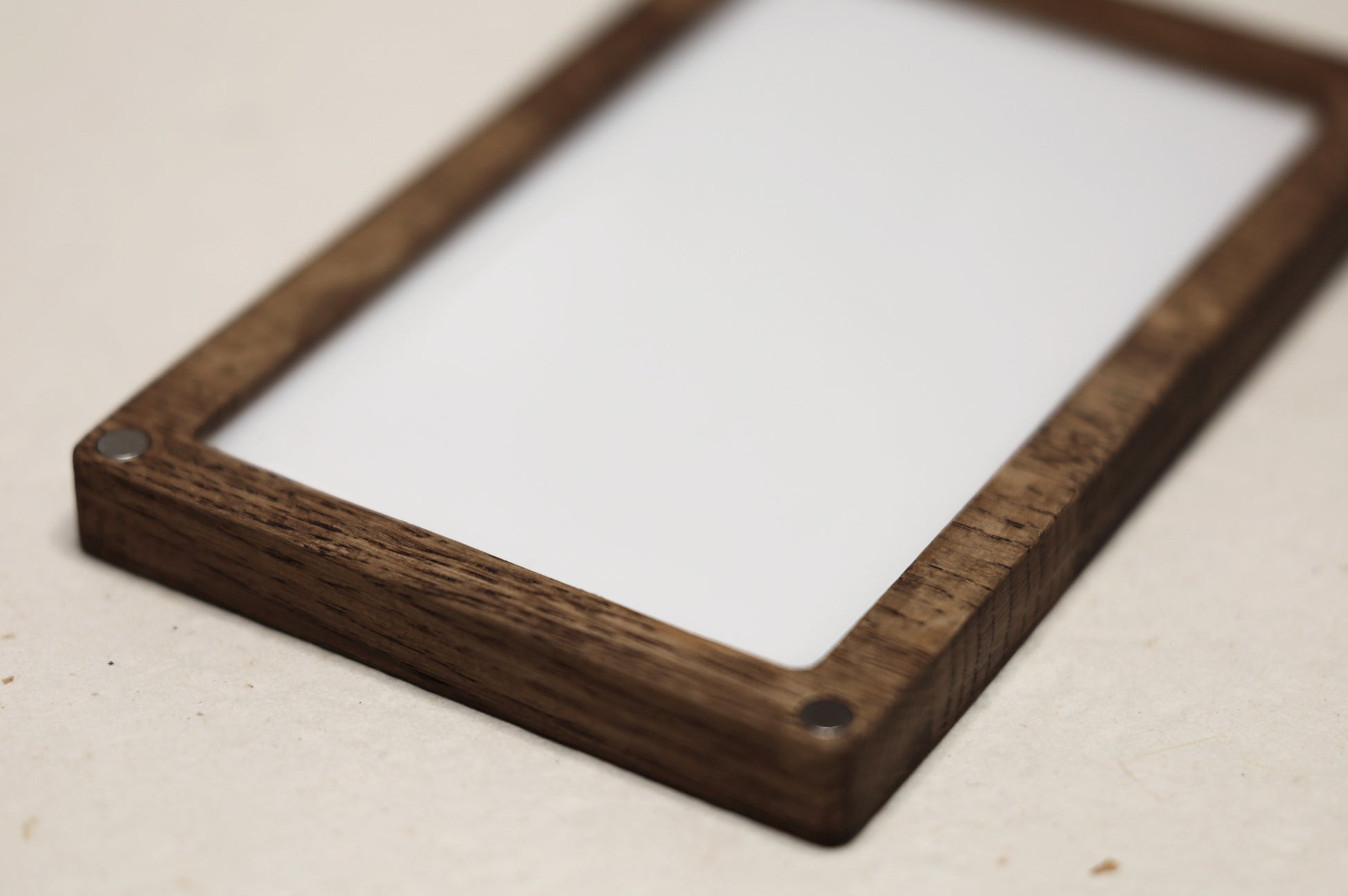 The layout is custom designed using our imagination and drawn using CAD software. We built a CNC router to cut the design into the wood and after that it's carefully sanded by hand to keep the rustic feel. To finish we apply an oil coat to make the wood waterproof. Magnets are put in place and held down with a touch of glue. Once that is finished the logo is cut with a laser directly onto the finished product. Everything is made at our family studio in our home, besides the wood of course!