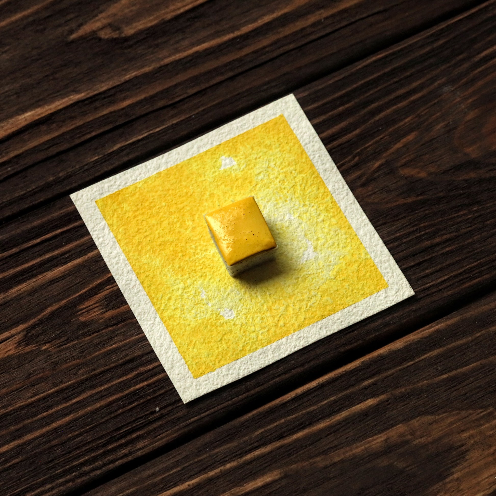 Zirconium Yellow is made of Pigment Yellow 159 (PY159). It's a rare and warm-leaning yellow pigment made from zirconium-praseodymium silicate. This synthetic inorganic pigment stands out for its unusual granulation, a property not commonly found in yellow pigments. While many yellows are smooth and flat in application, Zirconium Yellow adds a subtle texture to washes.